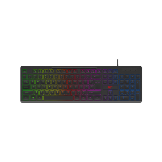 Вбудоване кольорове підсвічування клавіш. Символи на клавішах теж підсвічені (як латиниця так і кирилиця). Підсвічування вмикається і вимикається окремою клавішею і має 3 статичних колірні режими + режим дихання + регулювання яскравості. Клавіші низькопрофільні проте мають стандартний для всіх мембранних клавіатур хід.